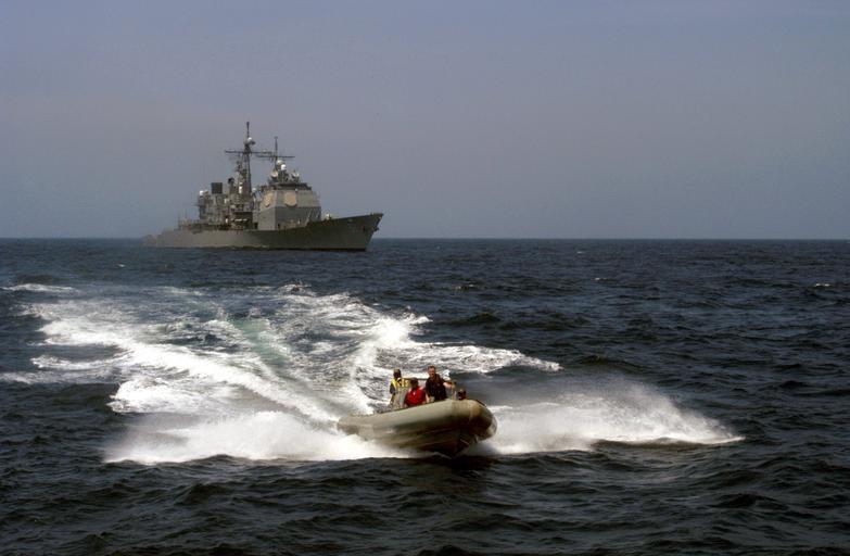 | Keywords: US Navy 030507-N-6669N-001 Maritime Interdiction Operations personnel assigned to the guided missile cruiser USS Thomas S. Gates approach the yard patrol craft YP-702 in a rigid hull inflatable boat (RHIB).jpg en At sea with USS Thomas S Gates CG 51 May 7 2003 -- Maritime Interdiction Operations personnel assigned to the guided missile cruiser USS Thomas S Gates approach the yard patrol craft YP-702 in a rigid hull inflatable boat RHIB to conduct Maritime Interdiction Operation MIO and Vessel Board Search and Seizure VBSS team training U S Navy photo by Gary Nichols RELEASED 2003-05-07 030507-N-6669N-001 Navy http //www navy mil/view_image asp id 7426 U S Navy photo by Gary Nichols PD-USGov-Military-Navy Rigid-hulled inflatable boats of US Navy USS Thomas S Gates CG-51 |