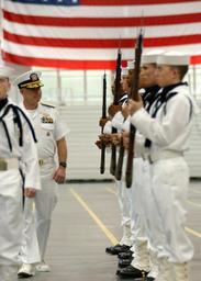 Keywords: US Navy 030530-N-5576W-003 Vice Adm. Gerald L. Hoewing, Chief of Naval Personnel, Reviewing Officer for the May 30th recruit graduation, inspects the recruit rifle drill team during the ceremony at Recruit Training Command Grea.jpg en Naval Station Great Lakes Ill May 30 2003 -- Vice Adm Gerald L Hoewing Chief of Naval Personnel Reviewing Officer for the May 30th recruit graduation inspects the recruit rifle drill team during the ceremony at Recruit Training Command Great Lakes During his visit Vice Adm Hoewing also visited the new barracks USS Constitution and the physical training facility Freedom Hall that have recently been completed as part of a nearly 1 billion re-capitalization project to replace barracks and training facilities at Recruit Training Command U S Navy photo by Photographer's Mate 1st Class Michael A Worner RELEASED 2003-05-30 030530-N-5576W-003 Navy http //www navy mil/view_image asp id 7868 U S Navy photo by Photographer's Mate 1st Class Michael A Worner PD-USGov-Military-Navy Recruit Training Command Great Lakes Illinois |