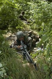 | Keywords: US Navy 030617-N-3725V-001 U.S. Marine Reservists prepare for possible hostilities while securing a perimeter on the island of Bornholm.jpg en Bornholm Denmark Jun 17 2003 -- U S Marine Reservists assigned to 3rd Platoon Fox Company 2nd Battalion from Milwaukee Wis prepare for possible hostilities while securing a perimeter on the island of Bornholm during the annual maritime exercise Baltic Operations BALTOPS 2003 The United States and 12 other nations are participating in this year's exercise BALTOPS 2003 is intended to improve interoperability between allies and Partnership for Peace countries by conducting a peace support operation at sea including exercises in gunnery replenishment-at-sea undersea warfare radar tracking mine countermeasures seamanship search and rescue maritime interdiction operations and scenarios dealing with potentially real world crises U S Navy photo by Photographer's Mate 1st Class Chadwick Vann RELEASED 2003-06-17 030617-N-3725V-001 Navy http //www navy mil/view_image asp id 8105 U S Navy photo by Photographer's Mate 1st Class Chadwick Vann PD-USGov-Military-Navy Bornholm BALTOPS 2003 FN MAG |