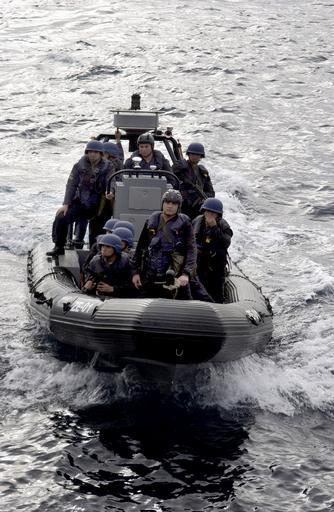 Keywords: US Navy 030617-N-9251B-135 Crewmembers assigned to the Chilean frigate ACh Ministro Zenteno (PF 08) approach the Spruance-class destroyer USS O'Bannon (DD 987) in a rigid-hull inflatable boat.jpg en Pacific Ocean Jun 17 2003 -- Crewmembers assigned to the Chilean frigate ACh Ministro Zenteno PF 08 approach the Spruance-class destroyer USS O'Bannon DD 987 in a rigid-hull inflatable boat RHIB while boarding the ship as part of a Maritime Interdiction Operation MIO exercise O'Bannon and Ministro Zenteno are among 19 ships participating in Teamwork South 2003 Teamwork South is a bi-annual multi-national exercise hosted by the Chilean Navy and conducted in Chilean territorial waters to further bolster a robust relationship and mutual understanding in the region It offers a unique opportunity to maintain a consistent training environment in the region as well as a continued multi-national commitment to hemispheric defense and coalition U S Navy photo by Photographer's Mate 1st Class Marthaellen L Ball RELEASED 2003-06-17 030617-N-9251B-135 Navy http //www navy mil/view_image asp id 8107 U S Navy photo by Photographer's Mate 1st Class Marthaellen L Ball PD-USGov-Military-Navy USS O'Bannon DD-987 Teamwork South 2003 |