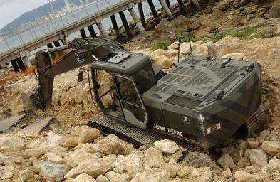 Keywords: US Navy 030717-N-1485H-014 Equipment Operator Constructionman Jermaine Young clears debris for the future site of a new extension to a seawall barrier.jpg en Tan Yon Pier Okinawa Japan Jul 17 2003 -- Equipment Operator Constructionman Jermaine Young clears debris for the future site of a new extension to a seawall barrier Constructionman Young is attached to Naval Mobile Construction Forty NMCB-40 deployed to Okinawa U S Navy photo by Photographer's Mate Airman Lamel J Hinton RELEASED 2003-07-17 030717-N-1485H-014 Navy http //www navy mil/view_image asp id 8613 U S Navy photo by Photographer's Mate Airman Lamel J Hinton PD-USGov-Military-Navy John Deere excavators Tracked 360 degree diggers Equipment Operator United States Navy Seawalls in Japan |