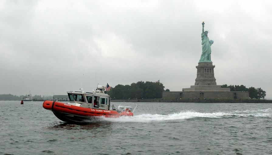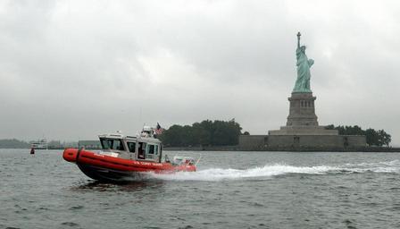 | Keywords: US Navy 030902-C-3948H-510 A U.S. Coast Guard Rigid Hull Inflatable Boat (RHIB) conducts a Homeland Security patrol near the Statue of Liberty.jpg en New York City N Y Sept 2 2004 A U S Coast Guard Rigid Hull Inflatable Boat RHIB conducts a Homeland Security patrol near the Statue of Liberty in New York Harbor Rigid hull inflatable boats are deep-V glass-reinforced plastic hulls to which a multi-compartment buoyancy tube is attached They are powered by either a gasoline outboard motor or an inboard/outboard diesel engine The RHIB can be easily deployed from a cutter and its portability and ruggedness allow it to be used across many Coast Guard mission areas U S Coast Guard Photo RELEASED 2004-09-02 030902-C-3948H-510 Navy http //www navy mil/view_image asp id 18290 U S Navy photo PD-USGov-Military-Navy Military in New York Rigid-hulled inflatable boats of US Coast Guard Glass-reinforced plastic Remote views of the Statue of Liberty |