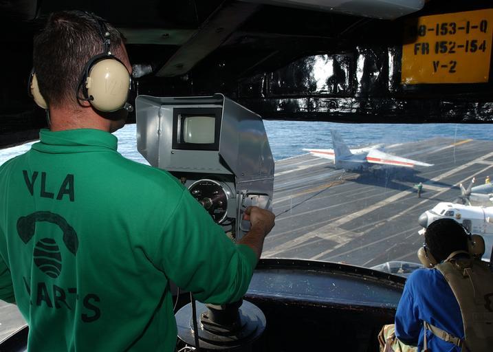 Keywords: US Navy 030912-N-6187M-002 nterior Communications Electrician' 3rd Class Michael P. Gray Jr., from Troy, Ill., mans the Platform Camera.jpg en Aboard USS Enterprise CVN 65 Sept 12 2003 -- Interior Communications Electrician' 3rd Class Michael P Gray Jr from Troy Ill mans the Pilot's Landing Aid Television PLAT camera while Airman Ivan D Patino from Denver Col makes calls over the sound-powered phone USS Enterprise CVN 65 is underway in the Atlantic Ocean completing its Comprehensive Training Unit Exercise COMPTUEX in preparation for deployment to the Mediterranean Sea U S Navy photo by Photographer's Mate 3rd Class Lance H Mayhew Jr RELEASED 2003-09-12 030912-N-6187M-002 Navy http //www navy mil/view_image asp id 9504 U S Navy photo by Photographer's Mate 3rd Class Lance H Mayhew Jr PD-USGov-Military-Navy Aboard USS Enterprise CVN-65 Interior Communications Electrician People of the United States Navy with sound-powered telephones |