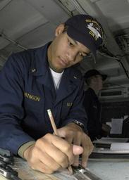 Keywords: US Navy 031205-N-0399H-030 Midshipman 2nd Class Samuel Robinson, from Jacksonville, Fla., plots the course of Yard Patrol Craft 698 (YP 698) on a navigational chart.jpg en Aboard Yard Patrol Craft 698 YP 698 Dec 5 2003 -- Midshipman 2nd Class Samuel Robinson from Jacksonville Fla plots the course of Yard Patrol Craft 698 YP 698 on a navigational chart as the vessel makes its way to Coast Guard Station Philadelphia from the U S Naval Academy in Annapolis Md Even though the Patrol Craft is equipped with a modern electronic navigational system Midshipmen use these underway periods for practicing their manual navigation skills The boat and crew are part of a formation of three Yard Patrol Crafts which made the transit the 104th playing of the Army Navy game The Navy went on to defeat the Black Knights of Army by a score of 34-6 and have been invited to play at the EV1 net Houston Bowl on December 30th U S Navy photo by Photographer's Mate 1st Class Dana Howe RELEASED 2003-12-05 031205-N-0399H-030 Navy http //www navy mil/view_image asp id 10978 U S Navy photo by Photographer's Mate 1st Class Dana Howe PD-USGov-Military-Navy Yard Patrol boats |