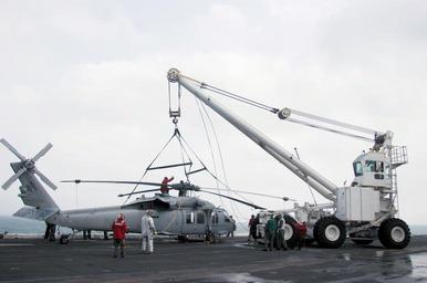 Keywords: US Navy 031207-N-0715P-051 Members assigned to USS Peleliu (LHA 5) flight deck Crash and Salvage Team and the squadron personnel assigned to the Gunbearers.jpg en Northern Arabian Sea Dec 7 2003 -- Members assigned to USS Peleliu LHA 5 flight deck Crash and Salvage Team and the squadron personnel assigned to the Gunbearers of Helicopter Combat Support Squadron Eleven HC-11 Search and Rescue detachment rig a crane harness onto an MH-60S Knighthawk assigned HC-11 during training operations on the flight deck The Peleliu Expeditionary Strike Group ESG is currently deployed in support of Operation Iraqi Freedom and the continued war on terrorism U S Navy photo by Photographer's Mate 2nd Class Joshua L Pritekel RELEASED 2003-12-07 031207-N-0715P-051 Navy http //www navy mil/view_image asp id 10946 U S Navy photo by Photographer's Mate 2nd Class Joshua L Pritekel PD-USGov-Military-Navy Aboard USS Peleliu LHA-5 Aircraft crash and salvage cranes Helicopter Combat Support Squadron 11 United States Navy |