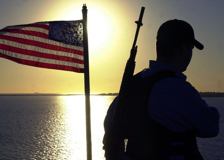 Keywords: US Navy 040105-N-8977L-003 Operations Specialist 2nd Class Hollis Saint John from of Dallas, Texas, stands his watch prior to the amphibious assault ship.jpg en Aboard USS Boxer LHD 4 Jan 5 2004 Operations Specialist 2nd Class Hollis Saint John from of Dallas Texas stands his watch prior to the amphibious assault ship USS Boxer LHD 4 getting underway Boxer departed for the Arabian Gulf on Jan 14 2004 as part of Operation Iraqi Freedom rotation of forces after returning from a regularly scheduled deployment in August 2003 The multi-purpose amphibious assault ship and its more than 900 Sailors and 200 Marines are transporting equipment and aviation assets for the 1st Marine Expeditionary Force 1st MEF from Camp Pendleton Calif U S Navy photo by Photographer's Mate 3rd Class Johansen Laurel RELEASED 2004-01-05 040105-N-8977L-003 Navy http //www navy mil/view_image asp id 11576 U S Navy photo by Photographer's Mate 3rd Class Johansen Laurel PD-USGov-Military-Navy Aboard USS Boxer LHD-4 Operations Specialist United States Navy M14 rifle Military people with a flag of the United States Silhouettes of men Photos taken with Nikon D1 |