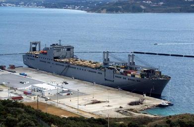 Keywords: US Navy 040106-N-0780F-008 The Large, Medium-Speed Roll-on-Roll-off Ship USNS Benavidez (T-AKR 306) sits pierside in Souda harbor during a brief port visit.jpg en Souda Bay Crete Greece Jan 06 2004 The Large Medium-Speed Roll-on/Roll-off Ship USNS Benavidez T-AKR 306 sits pierside in Souda harbor during a brief port visit Benavidez is carrying more than 230 000 square feet of U S Army combat equipment and supplies belonging to the Ft Hood Texas based 1st Cavalry Division currently deploying for service in Iraq The ship sailed from the U S and will off-load in Kuwait The move is part of a standard rotation of forces and their equipment in and out of Iraq The 950-foot vessel is named for Medal of Honor recipient Army Master Sergeant Roy P Benavidez USNS Benavidez is one of Military Sealift Command's nineteen Large Medium-Speed Roll-on/Roll-off Ships and is part of the 28 ships in the Sealift Program Office U S Navy photo by Paul Farley RELEASED 2004-01-06 040106-N-0780F-008 Navy http //www navy mil/view_image asp id 11300 U S Navy photo by Paul Farley PD-USGov-Military-Navy Naval Support Activity Souda Bay USNS Benavidez T-AKR-306 |