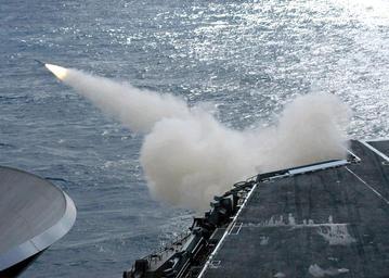 Keywords: US Navy 040121-N-6653C-002 A RIM-7M NATO Sea Sparrow surface-to-air missile is test fired off the fantail aboard USS Washington (CVN 73).jpg en Atlantic Ocean Jan 21 2004 A RIM-7M NATO Sea Sparrow surface-to-air missile is test fired off the fantail aboard USS George Washington CVN 73 The missile is propelled by a solid-fuel rocket motor and travels at supersonic speeds The Navy uses the Sea Sparrow aboard ships as a surface-to-air anti-missile defensive weapon The Norfolk Va -based nuclear powered aircraft carrier is on a scheduled deployment U S Navy photo by Photographer s Mate 3rd Class Sheryl M Campbell RELEASED 2004-01-21 040121-N-6653C-002 Navy http //www navy mil/view_image asp id 11521 U S Navy photo by Photographer s Mate 3rd Class Sheryl M Campbell PD-USGov-Military-Navy Launches of RIM-7 Sea Sparrow missiles Aboard USS George Washington CVN-73 |