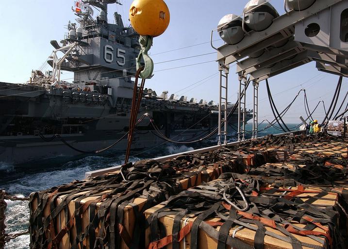 | Keywords: US Navy 040127-N-5405H-007 Equipment and supplies sit staged aboard the fast combat support ship USS Detroit (AOE 4), in preparation for transfer to the nuclear powered aircraft carrier USS Enterprise (CVN 65).jpg en Arabian Gulf Jan 27 2004 Equipment and supplies sit staged aboard the fast combat support ship USS Detroit AOE 4 in preparation for transfer to the nuclear powered aircraft carrier USS Enterprise CVN 65 during a replenishment at sea The Enterprise Carrier Strike Group CSG is nearing the end of a scheduled deployment in the region U S Navy photo by Photographer's Mate Airman Joshua E Helgeson RELEASED 2004-01-27 040127-N-5405H-007 Navy http //www navy mil/view_image asp id 12055 U S Navy photo by Photographer's Mate Airman Joshua E Helgeson PD-USGov-Military-Navy Cargo in transfer underway replenishment Aboard USS Enterprise CVN-65 |