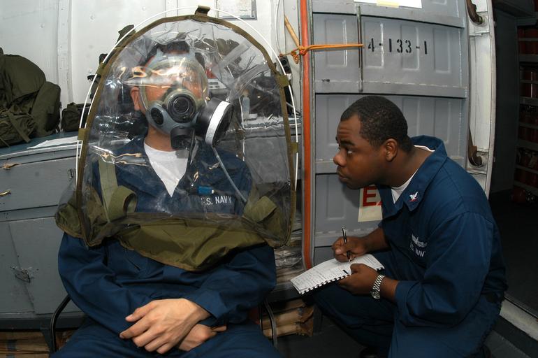 Keywords: US Navy 040128-N-8955H-003 Damage Controlman 3rd Class James Allen from Oakland, Calif., conducts a MCU-2P Gas Mask fit test using a TDA 99M respirator functional testing system on Disbursing Clerk Seaman Recruit Aidan Lee.jpg en Philippine Sea Jan 28 2004 - Damage Controlman 3rd Class James Allen from Oakland Calif conducts a MCU/2P Gas Mask fit test using a TDA 99M respirator functional testing system on Disbursing Clerk Seaman Recruit Aidan Lee from Shiprock N M in the Damage Control shop aboard USS Blue Ridge LCC 19 The respirator tester is used to check the sailor's gas mask for the correct fit and seal U S Navy photo by Photographer's Mate 1st Class Novia E Harrington RELEASED 2004-01-28 040128-N-8955H-003 Navy http //www navy mil/view_image asp id 11645 U S Navy photo by Photographer's Mate 1st Class Novia E Harrington PD-USGov-Military-Navy Damage Controlman Aboard USS Blue Ridge LCC-19 Disbursing Clerk MCU-2/P Protective Mask |