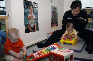 Keywords: US Navy 040312-N-7822B-008 Electrician^rsquo,s Mate 3rd Class Joy Carlos, assigned to Naval Station Everett, visits with her five month old daughter during her lunch break at the Child Development Center (CDC).jpg en Naval Station Everett Wash Mar 12 2004 - Electrician s Mate 3rd Class Joy Carlos assigned to Naval Station Everett visits with her five month old daughter during her lunch break at the Child Development Center CDC CDC provides military families with local and affordable childcare during normal working hours U S Navy photo by Photographer's Mate 3rd Class Sara Bohannan RELEASED 2004-03-12 040312-N-7822B-008 Navy http //www navy mil/view_image asp id 12647 U S Navy photo by Photographer's Mate 3rd Class Sara Bohannan PD-USGov-Military-Navy Naval Station Everett |