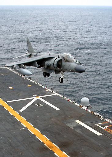 Keywords: US Navy 040317-N-2651J-002 An AV-8B Harrier jump jet assigned to the ^ldquo,Bulldogs^rdquo, of Marine Attack Squadron Two Two Three (VMA-223) makes it's final approach to the amphibious assault ship USS Saipan (LHA 2).jpg en Virginia Coast Mar 17 2004 - An AV-8B Harrier jump jet assigned to the Bulldogs of Marine Attack Squadron Two Two Three VMA-223 makes it's final approach to the amphibious assault ship USS Saipan LHA 2 during flight deck certification Saipan is currently underway in preparation for the ship's upcoming scheduled deployment U S Navy photo by Photographer's Mate Airman Apprentice Gary L Johnson III RELEASED 2004-03-17 040317-N-2651J-002 Navy http //www navy mil/view_image asp id 12787 U S Navy photo by Photographer's Mate Airman Apprentice Gary L Johnson III PD-USGov-Military-Navy Images from US Navy location Virginia Coast Marine Attack Squadron 223 Aboard USS Saipan LHA-2 AV-8B Harrier II US Marine Corps in flight |