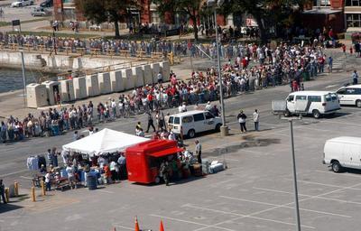 Keywords: US Navy 040319-N-0000K-104 Thousands of people wait in line for their turn to embark on a tour of the aircraft carrier USS John F. Kennedy (CV 67).jpg en Naval Air Station Pensacola Fla Mar 19 2004 - Thousands of people wait in line for their turn to embark on a tour of the aircraft carrier USS John F Kennedy CV 67 Kennedy arrived at Naval Air Station Pensacola Fla on March 17th for a four-day port visit after completing a Composite Training Unit Exercise COMTUEX in the Gulf of Mexico COMPTUEX is an intermediate level exercise designed to forge the strike group into a cohesive fighting team and is a critical step in pre-deployment training During COMPTUEX more than a dozen ships and Carrier Air Wing Seventeen CVW-17 embarked on Kennedy conducted war game exercises using training ranges along the East Coast of the U S and the Gulf of Mexico The exercise took advantage of existing ranges under the Navy s comprehensive Training Resource Strategy TRS These ranges offer training facilities and realistic simulations better preparing U S Navy ships and Sailors to participate in the Global War on Terrorism U S Navy Photo RELEASED 2004-03-19 040319-N-0000K-104 Navy http //www navy mil/view_image asp id 12816 U S Navy photo PD-USGov-Military-Navy Naval Air Station Pensacola Aboard USS John F Kennedy CV-67 |