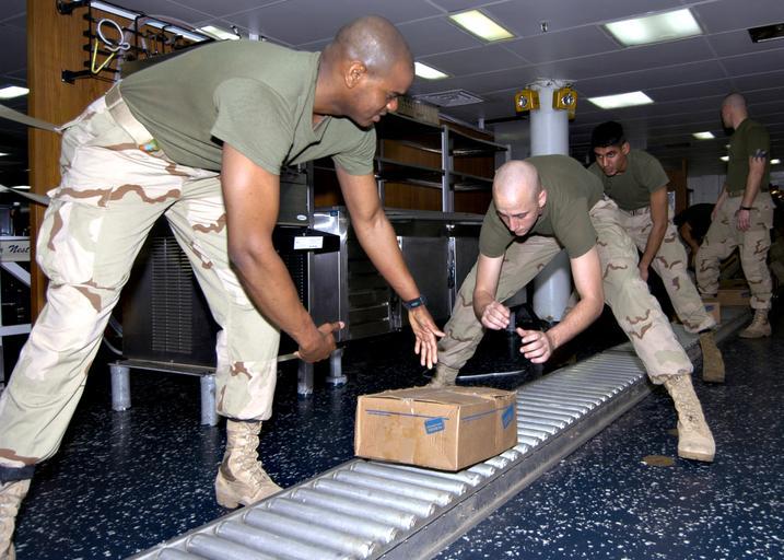 | Keywords: US Navy 040321-N-6380E-114 U.S. Marines assigned to the 22nd Marine Expeditionary Unit (22MEU) embarked aboard the amphibious assault ship USS Wasp (LHD 1) assist in a working party.jpg en Northern Arabian Sea Mar 21 2004 U S Marines assigned to the 22nd Marine Expeditionary Unit 22MEU embarked aboard the amphibious assault ship USS Wasp LHD 1 assist in a working party while on loading 228 palettes of stores from the Military Sealift Command MSC fast combat support ship USNS Supply T-AOE 6 Wasp and her embarked 22nd Marine Expeditionary Unit Special Operations Capable are currently on deployment in the 5th Fleet Area of Responsibility AOR as the lead ship for Expeditionary Strike Group Two ESG 2 U S Navy photo by Photographer s Mate 3rd Class Teresa J Ellison RELEASED 2004-03-21 040321-N-6380E-114 Navy http //www navy mil/view_image asp id 12949 U S Navy photo by Photographer s Mate 3rd Class Teresa J Ellison PD-USGov-Military-Navy Aboard USS Wasp LHD-1 Aboard USNS Supply T-AOE-6 22nd Marine Expeditionary Unit |