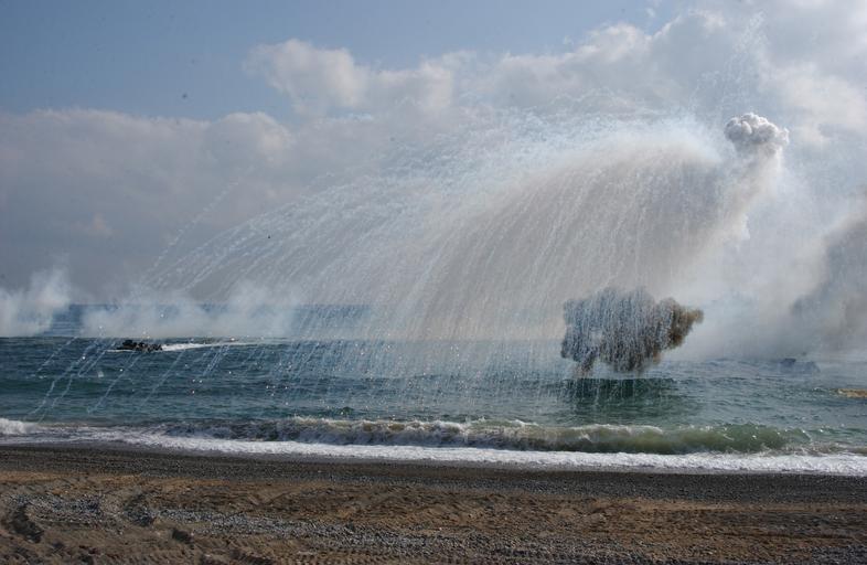 Keywords: US Navy 040326-A-5968S-114 Republic of Korea and U.S. Marine Corps amphibious assault tanks provide cover for landing craft via a smoke screen during a simulated amphibious assault near Pohang, Korea.jpg en Pohang Beach Korea Mar 26 2004 - Republic of Korea and U S Marine Corps amphibious assault tanks provide cover for landing craft via a smoke screen during a simulated amphibious assault near Pohang Korea in support of Reception Staging Onward Movement and Integration and Foal Eagle 2004 The exercise is an annual U S and South Korea exercise tailored to evaluate command capabilities to receive U S Forces from outside Korea while teaching coaching and mentoring exercise participants U S Army photo by Staff Sgt George Sebastian RELEASED 2004-03-26 040326-A-5968S-114 Navy http //www navy mil/view_image asp id 13036 U S Navy photo PD-USGov-Military-Navy Images from US Navy location Pohang Beach Korea Foal Eagle 2004 Smoke screens