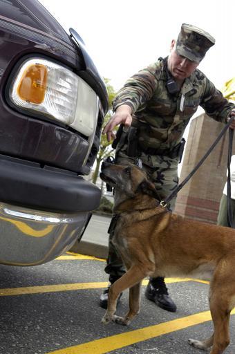 | Keywords: US Navy 040420-N-6477M-036 Master-at-Arms 2nd Class Rodney Ware and his partner Military Working Dog, Tessa, conduct random vehicle inspections.jpg en Naval Station Everett Wa Apr 20 2004 - Master-at-Arms 2nd Class Rodney Ware and his partner Military Working Dog Tessa conduct random vehicle inspections at the front gates of Naval Station Everett The pair have been working together for three years enforcing the Navy's zero tolerance policy for drugs on Naval bases U S Navy photo by Photographer's Mate 2nd Class Eli J Medellin RELEASED 2004-04-20 040420-N-6477M-036 Navy http //www navy mil/view_image asp id 13494 U S Navy photo by Photographer's Mate 2nd Class Eli J Medellin PD-USGov-Military-Navy Naval Station Everett Master-at-arms Military working dogs of the United States Detection dogs Dogs sniffing Dogs and automobiles |