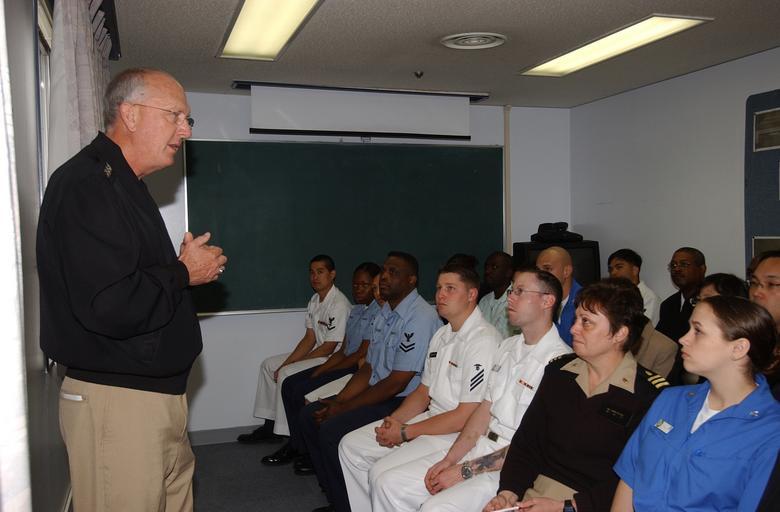 Keywords: US Navy 040504-N-0435H-052 Vice Adm. Michael L. Cowan, Surgeon General of the Navy and Chief, Bureau of Medicine and Surgery, visits the Branch Medical and Dental Clinics aboard Naval Air Facility Atsugi.jpg en Naval Air Facility Atsugi Japan May 4 2004 - Vice Adm Michael L Cowan Surgeon General of the Navy and Chief Bureau of Medicine and Surgery visits the Branch Medical and Dental Clinics aboard Naval Air Facility Atsugi and speaks to personnel about the future of Naval Medicine Visiting the Medical and Dental Clinics is one way VADM Cowan can ensure quality health delivery to all service members and their families U S Navy photo by Photographer's Mate 2nd Class Tracy Hull RELEASED 2004-05-04 040504-N-0435H-052 Navy http //www navy mil/view_image asp id 13864 U S Navy photo by Photographer's Mate 2nd Class Tracy Hull PD-USGov-Military-Navy Images from US Navy location Atsugi Japan Bureau of Medicine and Surgery Michael L Cowan