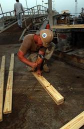 | Keywords: US Navy 040517-N-9885M-043 Construction Electrician 3rd Class Steven Boyette, of Savannah, Ga., hammers a nail into a piece of wood that will be used to make bunk beds for security forces on board the Al Basrah Oil Terminal (AB.jpg en Northern Arabian Gulf May 17 2004 - Construction Electrician 3rd Class Steven Boyette of Savannah Ga hammers a nail into a piece of wood that will be used to make bunk beds for security forces on board the Al Basrah Oil Terminal ABOT U S Navy Seabees from Naval Support Activity NSA Bahrain are making improvements for the living conditions of the Interim Marine Corps Security Force IMCSF company from Bahrain and Iraqi Security Forces that provide vital protection to the terminals Since July 2003 Al Basrah and Khawr Al Amaya oil terminals have pumped more than 385 million barrels of oil to more than 235 tankers resulting in more than 10 Billion in revenue for the Iraqi people U S Navy photo by Photographer's Mate 1st Class Alan D Monyelle RELEASED 2004-05-17 040517-N-9885M-043 Navy http //www navy mil/view_image asp id 14473 U S Navy photo by Photographer's Mate 1st Class Alan D Monyelle PD-USGov-Military-Navy United States Navy in the Persian Gulf Al Basrah Oil Terminal People using hammers |