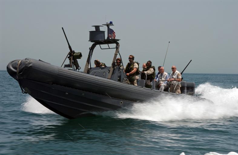 Keywords: US Navy 040520-N-7586B-057 Riding in a Rigid Hull Inflateable Boat (RHIB), Secretary of the Navy, Gordon R. England, is transported from the Al Basrah Oil Terminal (ABOT) to the coastal patrol ship USS Chinook (PC 9).jpg en Arabian Gulf May 20 2004 - Riding in a Rigid Hull Inflateable Boat RHIB Secretary of the Navy Gordon R England is transported from the Al Basrah Oil Terminal ABOT to the coastal patrol ship USS Chinook PC 9 by members assigned to Special Boat Team Twelve SBT-12 Secretary England expressed his support during a scheduled tour of deployed locations speaking with the troops stationed in the U S Central Command's Area of Responsibility U S Navy photo by Photographer's Mate 1st Class Bart A Bauer RELEASED 2004-05-20 040520-N-7586B-057 Navy http //www navy mil/view_image asp id 14479 U S Navy photo by Photographer's Mate 1st Class Bart A Bauer PD-USGov-Military-Navy Al Basrah Oil Terminal USS Chinook PC-9 Rigid-hulled inflatable boats of US Navy Gordon R England Special Warfare Combatant-craft Crewmen Basra People of Basra Special Boat Team 12 |