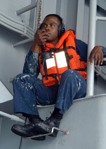 | Keywords: US Navy 040609-N-5313A-023 Seaman Kedric Young relays a message to a life raft coxswain during a Search and Rescue drill.jpg en Onslow Bay N C Jun 9 2004 Seaman Kedric Young relays a message to a life raft coxswain during a Search and Rescue drill aboard the amphibious assault ship USS Kearsarge LHD 3 Kearsarge is surged deployed to transport elements of the 24th Marine Expeditionary Unit Air Combat Element to the Central Command Area of Responsibility in support of Operation Iraqi Freedom OIF and the Global War on Terrorism U S Navy photo by Photographer s Mate Airman Sarah E Ard RELEASED 2004-06-09 040609-N-5313A-023 Navy http //www navy mil/view_image asp id 15022 U S Navy photo by Photographer s Mate Airman Sarah E Ard PD-USGov-Military-Navy Military in North Carolina Aboard USS Kearsarge LHD-3 Males with life jackets |