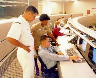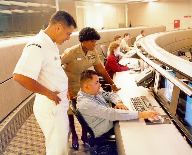 Keywords: US Navy 040614-N-7952W-001 Information Systems Technician 1st Class Thomas Dull, left, Lt. Stella Nealy, center, and Information Systems Technician 2nd Class Eduardo Pallanes study a computer monitor at Naval Network and Space.jpg en San Diego Calif June 14 2004 Information Systems Technician 1st Class Thomas Dull left Lt Stella Nealy center and Information Systems Technician 2nd Class Eduardo Pallanes study a computer monitor at Naval Network and Space Operations Command Petty Officer Dull recently received the Navy Marine Corps Internet NMCI Innovation Award by the Navy s NMCI Program Office The award presented during the NMCI Industry Symposium recognized individuals who have created solutions that have enhanced transition to the NMCI environment or leveraged NMCI capabilities to achieve enhanced efficiencies Dull serves as Leading Petty Officer for the training department with Naval Network and Space Operations Command s NMCI Detachment San Diego Calif U S Navy photo by Gary R Wagner RELEASED 2004-06-14 040614-N-7952W-001 Navy http //www navy mil/view_image asp id 18291 U S Navy photo by Gary R Wagner PD-USGov-Military-Navy Naval Base San Diego in the 2000s Information Systems Technician United States Navy People using computers in the 2000s |