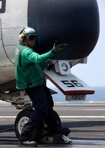 Keywords: US Navy 040615-N-4953E-001 Aviation Boatswain^rsquo,s Mate 3rd Class Timothy Stephenson pushes the launch bar down onto the catapult as a C-2A Greyhound.jpg en Atlantic Ocean Jun 15 2004 - Aviation Boatswain s Mate 3rd Class Timothy Stephenson pushes the launch bar down onto the catapult as a C-2A Greyhound assigned to the Rawhides of Fleet Logistics Support Squadron Four Zero VRC-40 as it prepares launch from one of four catapults on the flight deck of USS Harry S Truman CVN 75 Truman is one of seven aircraft carriers involved in the Summer Pulse 2004 Summer Pulse 2004 is the simultaneous deployment of seven aircraft strike groups CSG s demonstrating the ability of the Navy to provide credible combat across the globe in five theaters with other U S allied and coalition military forces Summer Pulse is the Navy s first deployment under its new Fleet Response Plan FRP The Strike Group is conducting a scheduled training exercise followed by overseas pulse operations U S Navy photo by Photographer's Mate 2nd Class Danny Ewing Jr RELEASED For more information go to <a href http //www cffc navy mil/summerpulse04 htm Target _BLANK >www cffc navy mil/summerpulse04 htm</a> 2004-06-15 040615-N-4953E-001 Navy http //www navy mil/view_image asp id 15126 U S Navy photo by Photographer's Mate 2nd Class Danny Ewing Jr PD-USGov-Military-Navy Aboard USS Harry S Truman CVN-75 Grumman C-2 Greyhound Fleet Logistics Support Squadron 40 United States Navy Photographs by Danny Ewing Jr |