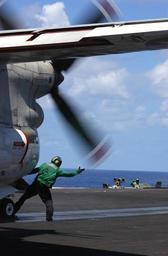 Keywords: US Navy 040617-N-4953E-013 Aviation Boatswain's Mate 3rd Class Timothy Stephenson pushes the launch bar down into the catapult shuttle as a C-2A Greyhound prepares for launch.jpg en Pacific Ocean June 17 2004 - Aviation Boatswain's Mate 3rd Class Timothy Stephenson pushes the launch bar down into the catapult shuttle as a C-2A Greyhound assigned to the Rawhides of Fleet Logistics Squadron Four Zero VRC-40 prepares for launch aboard USS Harry S Truman CVN 75 Truman is one of seven aircraft carriers involved in the Summer Pulse 2004 Summer Pulse 2004 is the simultaneous deployment of seven aircraft strike groups CSGs demonstrating the ability of the Navy to provide credible combat across the globe in five theaters with other U S allied and coalition military forces Summer Pulse is the Navy's first deployment under its new Fleet Response Plan FRP U S Navy photo by Photographer's Mate 2nd Class Danny Ewing Jr RELEASED For more information go to <a href http //www cffc navy mil/summerpulse04 htm Target _BLANK >www cffc navy mil/summerpulse04 htm</a> 2004-06-17 040617-N-4953E-013 Navy http //www navy mil/view_image asp id 15605 U S Navy photo by Photographer's Mate 2nd Class Danny Ewing Jr PD-USGov-Military-Navy Aviation Boatswain's Mates Aboard USS Harry S Truman CVN-75 Grumman C-2 Greyhound Fleet Logistics Support Squadron 40 United States Navy Photographs by Danny Ewing Jr |