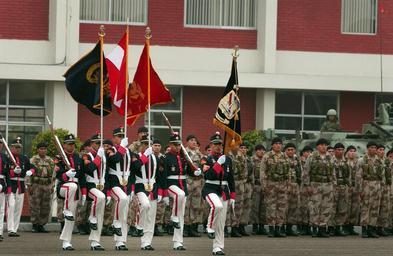 Keywords: US Navy 040624-N-1464F-006 The Fanning Company Peruvian Marine Drill Team performs during the commencement ceremonies for UNITAS 45-04.jpg en Ancon Marine Base Peru June 24 2004 - The Fanning Company Peruvian Marine Drill Team performs during the commencement ceremonies for UNITAS 45-04 Eleven partner nations including those from the United States and Latin America came together for opening ceremonies The combined effort focusing on peacekeeping and humanitarian assistance operations is one of the largest multilateral exercises in the Southern Hemisphere UNITAS is designed to increase interoperability in traditional amphibious warfare areas U S Navy photo by Photographer's Mate 2nd Class Hueming Mui RELEASED 2004-06-24 040624-N-1464F-006 Navy http //www navy mil/view_image asp id 15418 U S Navy photo by Photographer's Mate 2nd Class Hueming Mui PD-USGov-Military-Navy Images from US Navy location Ancon Marine Base Peru June 2004 in Peru |