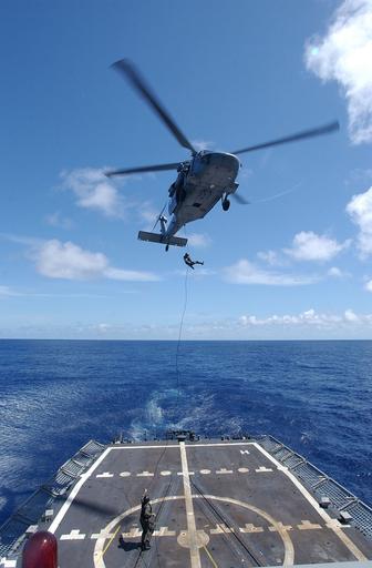 Keywords: US Navy 040626-N-4768W-071 Sailors assigned to Explosive Ordnance Disposal Mobile Unit Eleven (EODMU-11), repel from an MH-60S Knighthawk.jpg en Pacific Ocean June 26 2004 Sailors assigned to Explosive Ordnance Disposal Mobile Unit Eleven EODMU-11 repel from an MH-60S Knighthawk assigned to the Gunbearers of Helicopter Combat Support Squadron Eleven HC-11 onto the flight deck of the guided missile frigate USS Ford FFG-54 Ford is assigned to the USS John C Stennis CVN 74 Carrier Strike Group CSG which is participating in Summer Pulse 2004 Summer Pulse 2004 is the simultaneous deployment of seven aircraft strike groups CSGs demonstrating the ability of the Navy to provide credible combat across the globe in five theaters with other U S allied and coalition military forces Summer Pulse is the Navy's first deployment under its new Fleet Response Plan FRP Stennis and embarked Carrier Air Wing Fourteen CVW-14 are currently in the Hawaiian operating area on a regularly scheduled deployment U S Navy photo by Photographer's Mate 3rd Class Joshua Word RELEASED For more information go to <a href http //www cffc navy mil/summerpulse04 htm Target _BLANK >www cffc navy mil/summerpulse04 htm</a> 2004-06-26 040626-N-4768W-071 Navy http //www navy mil/view_image asp id 15610 U S Navy photo by Photographer's Mate 3rd Class Joshua Word PD-USGov-Military-Navy United States Navy Explosive Ordnance Disposal Aboard USS John C Stennis CVN-74 Aboard USS Ford FFG-54 Explosive Ordnance Disposal Mobile Unit 11 Helicopter Combat Support Squadron 11 United States Navy |