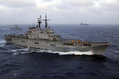 Keywords: US Navy 040712-N-7748K-002 The Italian aircraft carrier ITS Giuseppe Garibaldi (C 551), the Turkish frigate TCG Gediz (F 495) and the USS Harry S. Truman (CVN 75) steam together through the Atlantic Ocean while participating in.jpg en Atlantic Ocean July 12 2004 - The Italian aircraft carrier ITS Giuseppe Garibaldi C 551 the Turkish frigate TCG Gediz F 495 and the USS Harry S Truman CVN 75 steam together through the Atlantic Ocean while participating in Majestic Eagle 2004 Majestic Eagle a multinational exercise being conducted off the coast of Morocco The exercise demonstrates the combined force capabilities and quick response times of the participating naval air undersea and surface warfare groups Countries involved in the NATO led exercise include the United Kingdom Morocco France Italy Portugal Spain and Turkey Truman's participation in Majestic Eagle is part of her scheduled deployment supporting the Navy's new fleet response plan FRP Summer Pulse 2004 the simultaneous deployment of seven carrier strike groups CSGs demonstrating the ability of the Navy to provide credible combat across the globe in five theaters with other U S allied and coalition military forces U S Navy photo by Photographer's Mate Airman Josh Kinter RELEASED For more information go to <a href http //www cffc navy mil/summerpulse04 htm Target _BLANK >http //www cffc navy mil/summerpulse04 htm</a> 2004-07-12 040712-N-7748K-002 Navy http //www navy mil/view_image asp id 16102 U S Navy photo by Photographer's Mate Airman Josh Kinter PD-USGov-Military-Navy Giuseppe Garibaldi C 551 TCG Gediz F-495 MEDSHARK-Majestic Eagle 2004 Summer Pulse 2004 |