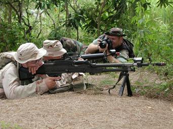 Keywords: US Navy 040715-N-5972N-009 U.S. Navy Photographer's Mate 2nd Class Richard Brunson, assigned to Fleet Combat Camera Group Pacific, documents Marines.jpg en Kahuku Training Area Oahu Hawaii July 15 2004 - U S Navy Photographer's Mate 2nd Class Richard Brunson assigned to Fleet Combat Camera Group Pacific documents Marines at the Kahuku Training Area on the island of Oahu Hawaii The Marines are assigned to the 3rd Marine Regiment Kaneohe Hawaii and are role-playing as opposition force OPFOR personnel in a training event in support of exercise Rim of the Pacific 2004 RIMPAC is the largest international maritime exercise in the waters around the Hawaiian Islands This year's exercise includes seven participating nations; Australia Canada Chile Japan South Korea the United Kingdom and the United States RIMPAC is intended to enhance the tactical proficiency of participating units in a wide array of combined operations at sea while enhancing stability in the Pacific Rim region U S Navy photo by Lt Cmdr Rick Naystatt RELEASED For more information go to <a href http //www cpf navy mil/RIMPAC2004 Target _BLANK >www cpf navy mil/RIMPAC2004</a>/ 2004-07-15 040715-N-5972N-009 Navy http //www navy mil/view_image asp id 16269 U S Navy photo by Lt Cmdr Rick Naystatt PD-USGov-Military-Navy Kahuku Training Area Oahu RIMPAC 2004 Photographers Mate People with cameras M16 rifle with Multiple Integrated Laser Engagement System M-240 machine gun Opposing forces of the United States Armed Forces |