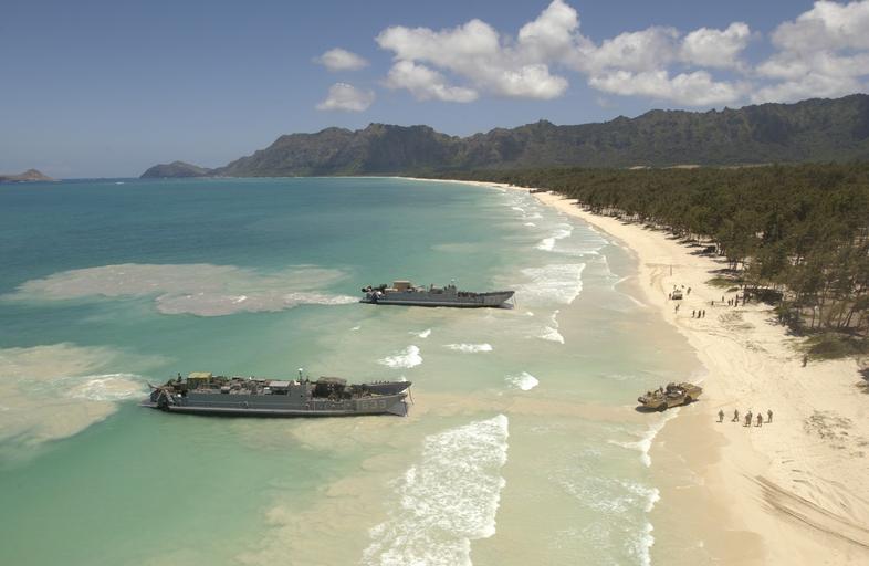 Keywords: US Navy 040720-N-6811L-401 Landing Craft Utilities (LCU) assigned to the Surf Riders of Assault Craft Unit One (ACU-1) offload embarked Marines from 3rd Marine Regiment on the beach during training in support of exercise Rim of.jpg en Bellows Air Force Base July 20 2004 - Landing Craft Utilities LCU assigned to the Surf Riders of Assault Craft Unit One ACU-1 offload embarked U S Marines from 3rd Marine Regiment on the beach during amphibious assault training in support of exercise Rim of the Pacific RIMPAC 2004 RIMPAC is the largest international maritime exercise in the waters around the Hawaiian Islands This year's exercise includes seven participating nations; Australia Canada Chile Japan South Korea the United Kingdom and the United States RIMPAC is intended to enhance the tactical proficiency of participating units in a wide array of combined operations at sea while enhancing stability in the Pacific Rim region U S Navy photo by Photographer's Mate 1st Class David A Levy RELEASED For more information go to <a href http //www cpf navy mil/RIMPAC2004 Target _BLANK >http //www cpf navy mil/RIMPAC2004</a>/ 2004-07-20 040720-N-6811L-401 Navy http //www navy mil/view_image asp id 16461 U S Navy photo by Photographer's Mate 1st Class David A Levy PD-USGov-Military-Navy Bellows Air Force Station RIMPAC 2004 LCU 1633 ship 1968 LCU 1635 ship 1968 Assault Craft Unit 1