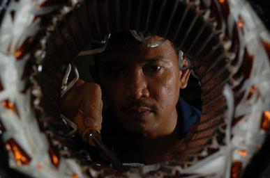 Keywords: US Navy 040806-N-0684R-158 Electrician's Mate 1st Class Solomon Canonizado from Oxnard, Calif., chisels out a paper seal inside the core of an electric motor.jpg en Western Pacific Aug 6 2004 - Electrician's Mate 1st Class Solomon Canonizado from Oxnard Calif chisels out a paper seal inside the core of an electric motor in the motor rewind shop aboard the aircraft carrier USS John C Stennis CVN 74 Stennis and Carrier Air Wing Fourteen CVW-14 are at sea on a regularly scheduled deployment in the Western Pacific U S Navy photo by Photographer's Mate Airman Ron Reeves RELEASED 2004-08-06 040806-N-0684R-158 Navy http //www navy mil/view_image asp id 16880 U S Navy photo by Photographer's Mate Airman Ron Reeves PD-USGov-Military-Navy Images from US Navy location Western Pacific Electrician's Mate |