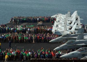 Keywords: US Navy 040921-N-8704K-001 All hands participate in a Foreign Object Damage (FOD) walk down on the flight deck aboard the conventionally powered aircraft carrier US John F. Kennedy (CV 67).jpg en Persian Gulf Sept 21 2004 - All hands participate in a Foreign Object Damage FOD walk down on the flight deck aboard the conventionally powered aircraft carrier US John F Kennedy CV 67 This task is performed each day and night before flight operations to ensure the flight deck is clear of all foreign objects which could be ingested by jet aircraft damaging expensive equipment or place flight deck personnel in danger Kennedy and embarked Carrier Air Wing Seventeen CVW-17 are currently on deployment in the 5th Fleet area of responsibility in support of Operation Iraqi Freedom OIF Units in the Kennedy Carrier Strike Group are working closely with Multi-National Corps-Iraq and Iraqi forces to bring stability to the sovereign government of Iraq U S Navy photo by Photographer's Mate 3rd Class Joshua Karsten RELEASED 2004-09-21 040921-N-8704K-001 Navy http //www navy mil/view_image asp id 17790 U S Navy photo by Photographer's Mate 3rd Class Joshua Karsten PD-USGov-Military-Navy United States Navy in the Persian Gulf Foreign Object Damage walk downs |
