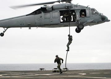 Keywords: US Navy 040927-N-0376G-001 Explosive Ordnance Disposal (EOD) members repel from an MH-60S Knighthawk.jpg en Pacific Ocean Sept 27 2004 - Explosive Ordnance Disposal EOD members repel from an MH-60S Knighthawk assigned to the Gunbearers of Helicopter Combat Support Squadron Eleven HC-11 Detachment Nine to the flight deck aboard the fast combat supply ship USS Camden AOE-2 during fast-rope exercises Camden was operating with the Nimitz-class aircraft carrier USS Carl Vinson CVN 70 during Composite Training Unit Exercise COMTUEX U S Navy photo by Photographer's Mate 3rd Class Travis Gee RELEASED 2004-09-27 040927-N-0376G-001 Navy http //www navy mil/view_image asp id 18225 U S Navy photo by Photographer's Mate 3rd Class Travis Gee PD-USGov-Military-Navy United States Navy Explosive Ordnance Disposal Aboard USS Carl Vinson CVN-70 Fast roping Helicopter Combat Support Squadron 11 United States Navy |