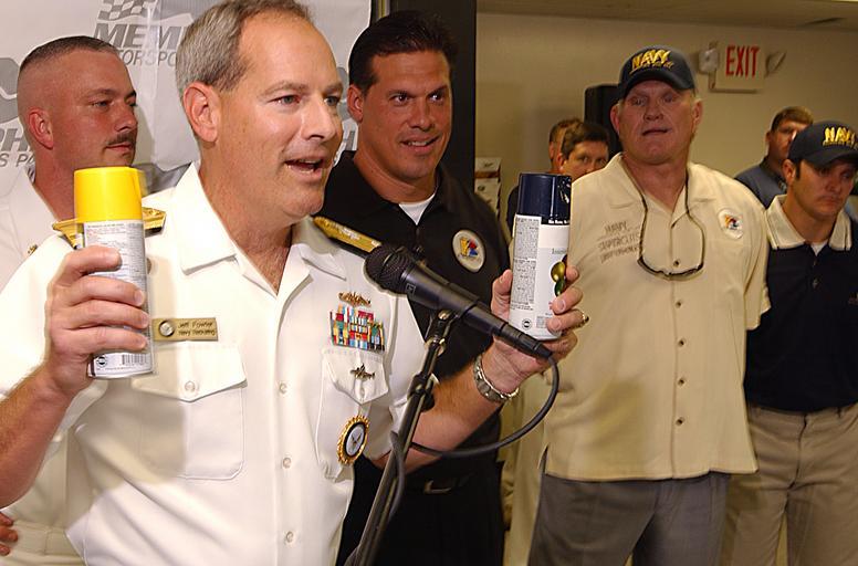 | Keywords: US Navy 041022-N-5862D-097 Everything is going to change except the Navy colors of blue and yellow, said, Commander, Navy Recruiting Command, Rear Adm. Jeff Fowler said, as the Navy announced it^rsquo,s contract renewal for the.jpg en Millington Tenn Oct 22 2004 Everything is going to change except the Navy colors of blue and yellow said Commander Navy Recruiting Command Rear Adm Jeff Fowler said as the Navy announced it s contract renewal for the 2005 season with FitzBradshaw Racing during a press conference at the Memphis Motor Sports Park in Millington Tenn Stremme the 2003 Busch Series Rookie of the Year will take the wheel in the Dodge Charger U S Navy photo by Chief Photographer s Mate Chris Desmond RELEASED 2004-10-22 041022-N-5862D-097 Navy http //www navy mil/view_image asp id 18402 U S Navy photo by Chief Photographer s Mate Chris Desmond PD-USGov-Military-Navy Military in Tennessee Jeffrey Fowler Armando Fitz Terry Bradshaw David Stremme |