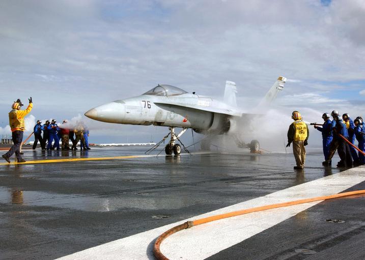Keywords: US Navy 041107-N-7130B-033 Air Department personnel approach a static training aircraft on the flight deck aboard the Nimitz-class aircraft carrier USS Ronald Reagan (CVN 76), during extensive aircraft firefighting drills at se.jpg en Pacific Ocean Nov 7 2004 - Air Department personnel approach a static training aircraft on the flight deck aboard the Nimitz-class aircraft carrier USS Ronald Reagan CVN 76 during extensive aircraft firefighting drills at sea Reagan is conducting sea trials for the first time since arriving in its new homeport of San Diego Calif U S Navy photo by Photographer's Mate Airman Aaron Burden RELEASED 2004-11-07 041107-N-7130B-033 Navy http //www navy mil/view_image asp id 18663 U S Navy photo by Photographer's Mate Airman Aaron Burden PD-USGov-Military-Navy Firefighting training on USS Ronald Reagan CVN-76 Aviation fire training F/A-18 Hornet on flight decks |