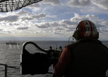 | Keywords: US Navy 041112-N-6920A-001 Chief Aviation Ordnanceman Scott Kuczynski of Pittsburgh, Pa., fires a twin .50-caliber machine gun aboard the amphibious assault ship USS Saipan (LHA 2) at the decommissioned research ship Gosport du.jpg en Atlantic Ocean Nov 12 2004 Chief Aviation Ordnanceman Scott Kuczynski of Pittsburgh Pa fires a twin 50-caliber machine gun aboard the amphibious assault ship USS Saipan LHA 2 at the decommissioned research ship Gosport during a Sink Exercise conducted 300 miles off the East Coast of the United States Ships from the Saipan Expeditionary Strike Group several units of NATO's Standing Naval Force Atlantic STANAVFORLANT and a variety of aircraft successfully completed a live-fire exercise sinking the decommissioned destroyer Hayler and research vessel Gosport Nov 12-14 All decommissioned ships receive a thorough inspection by the EPA before sinking and will now act as an artificial reef for deep-sea marine life The sinking of these ships provides unique weapons training opportunities U S Navy photo by Photographer's Mate 3rd Class Latrice Ames RELEASED 2004-11-12 041112-N-6920A-001 Navy http //www navy mil/view_image asp id 18893 U S Navy photo by Photographer's Mate 3rd Class Latrice Ames PD-USGov-Military-Navy Browning M2 of the US Navy Aviation Ordnanceman Aboard USS Saipan LHA-2 Shooting Sinking exercises |