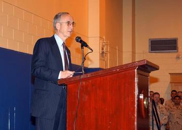 Keywords: US Navy 041121-N-1825E-002 Secretary of the Navy (SECNAV), the Honorable Gordon R. England, addresses more than 300 officers and enlisted Sailors and Marines in Manama, Bahrain.jpg en Manama Bahrain Nov 21 2004 - Secretary of the Navy SECNAV the Honorable Gordon R England addresses more than 300 officers and enlisted Sailors and Marines in Manama Bahrain Secretary England opened the floor for questions and discussed education computer training and balancing professional and personal goals He is scheduled to visit seven other countries during his 10-day trip to the Middle East including Egypt Djibouti and Kuwait U S Navy photo by Journalist Seaman Joseph Ebalo RELEASED 2004-11-21 041121-N-1825E-002 Navy http //www navy mil/view_image asp id 19191 U S Navy photo by Journalist Seaman Joseph Ebalo PD-USGov-Military-Navy US Navy in Manama Bahrain |