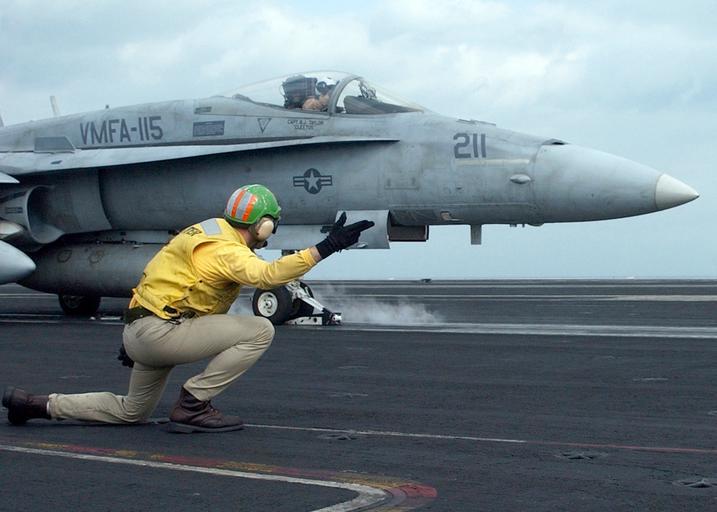 Keywords: US Navy 041209-N-6363M-005 Lt. cmdr. Brian Weiss launches an F-A-18A- Hornet assigned to the Silver Eagles of Marine Fighter Attack Squadron One One Five (VMFA-115).jpg en Persian Gulf Dec 9 2004 Lt cmdr Brian Weiss launches an F/A-18A+ Hornet assigned to the Silver Eagles of Marine Fighter Attack Squadron One One Five VMFA-115 from one of the four steam-powered catapults aboard the Nimitz-class aircraft carrier USS Harry S Truman CVN 75 Currently aircraft from Carrier Air Wing Three CVW-3 embarked aboard Truman are providing close air support and conducting intelligence surveillance and reconnaissance missions in ongoing operations over Iraq Truman s Carrier Strike Group Ten CSG-10 and CVW-3 are on a regularly scheduled deployment in support of the Global War on Terrorism US Navy photo by Photographer s Mate Airman Philip V Morrill RELEASED 2004-12-09 041209-N-6363M-005 Navy http //www navy mil/view_image asp id 19666 U S Navy photo PD-USGov-Military-Navy Aboard USS Harry S Truman CVN-75 |