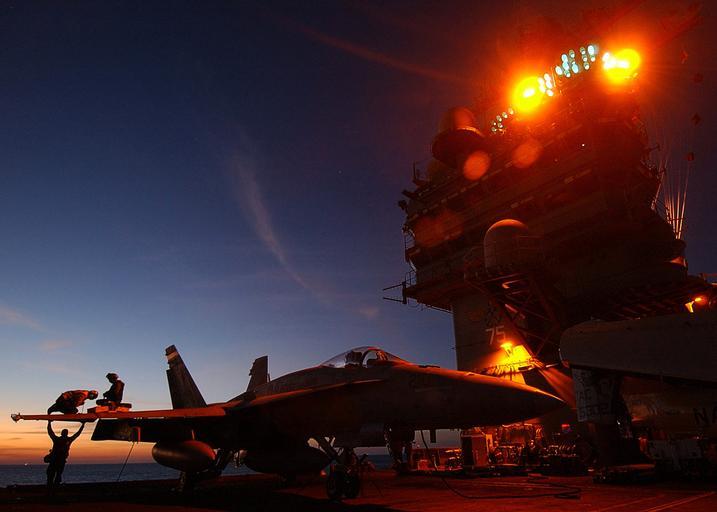 | Keywords: US Navy 041211-N-4308O-021 Marines assigned to the Silver Eagles of Marine Fighter Attack Squadron One One Five (VMFA-115) perform maintenance on an F-A 18A- Hornet after flight operations aboard the USS Harry S. Truman (CVN 75.jpg en Persian Gulf Dec 11 2004 - Marines assigned to the Silver Eagles of Marine Fighter Attack Squadron One One Five VMFA-115 perform maintenance on an F/A 18A+ Hornet after flight operations aboard the Nimitz-class aircraft carrier USS Harry S Truman CVN 75 Currently aircraft from Carrier Air Wing Three CVW-3 embarked aboard Truman is providing close air support conducting intelligence surveillance and reconnaissance missions in ongoing operations over Iraq Truman s Carrier Strike Group Ten CSG-10 and CVW-3 are on a regularly scheduled deployment in support of the Global War on Terrorism US Navy photo by Photographer s Mate Airman Ryan O'Connor RELEASED 2004-12-11 041211-N-4308O-021 Navy http //www navy mil/view_image asp id 19740 U S Navy photo PD-USGov-Military-Navy Aboard USS Harry S Truman CVN-75 |