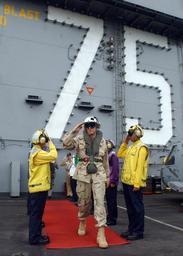 Keywords: US Navy 041215-N-5345W-005 The Chairman of the Joint Chiefs of Staff Gen. Richard Myers, walks through rainbow side boys as he departs the Nimitz-class aircraft carrier USS Harry S. Truman (CVN 75).jpg en Persian Gulf Dec 15 2004 The Chairman of the Joint Chiefs of Staff Gen Richard Myers walks through rainbow side boys as he departs the Nimitz-class aircraft carrier USS Harry S Truman CVN 75 Truman s crew and embarked Carrier Air Wing Three CVW-3 enjoyed the Chairman of the Joint Chiefs of Staff Holiday USO Show starring Former National Football League Quarterback John Elway Sportscaster and Model Leeann Tweedan and Actor Comedian Blake Clark Currently aircraft from Carrier Air Wing Three CVW-3 embarked aboard Truman are providing close air support and conducting intelligence surveillance and reconnaissance missions in ongoing operations over Iraq Truman's Carrier Strike Group Ten CSG-10 and embarked CVW-3 are currently on a regularly scheduled deployment in support of the Global War on Terrorism U S Navy photo by Photographer s Mate Airman Kristopher Wilson RELEASED 2004-12-15 041215-N-5345W-005 Navy http //www navy mil/view_image asp id 19642 U S Navy photo by Photographer s Mate Airman Kristopher Wilson PD-USGov-Military-Navy Aboard USS Harry S Truman CVN-75 Richard Myers 75 number Rainbow sideboys with red carpets |