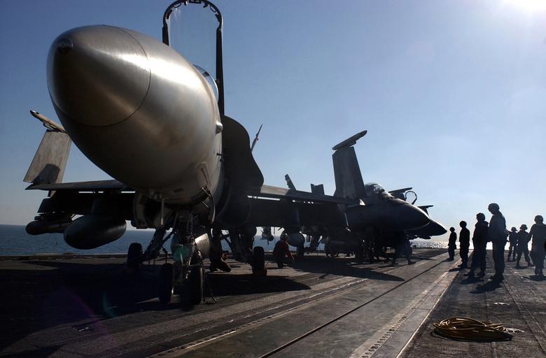 Keywords: US Navy 041223-N-2984R-217 Sailors assigned to the Silver Eagles of Marine Fighter Attack Squadron (VMFA-115) stand-by as their squadron's F-A-18A- Hornet start its engines.jpg en Persian Gulf Dec 23 2004 - Sailors assigned to the Silver Eagles of Marine Fighter Attack Squadron VMFA-115 stand-by as their squadron's F/A-18A+ Hornet start its engines prior to launching from the flight deck of the Nimitz-class aircraft carrier USS Harry S Truman CVN 75 Carrier Air Wing Three CVW-3 is providing close air support and conducting intelligence surveillance and reconnaissance missions over Iraq The Truman Strike Group and CVW-3 are on a regularly scheduled deployment in support of the Global War on Terrorism U S Navy photo by Photographer's Mate Airman Apprentice Ricardo J Reyes RELEASED 2004-12-23 041223-N-2984R-217 Navy http //www navy mil/view_image asp id 20046 U S Navy photo by Photographer's Mate Airman Apprentice Ricardo J Reyes PD-USGov-Military-Navy Aboard USS Harry S Truman CVN-75 |