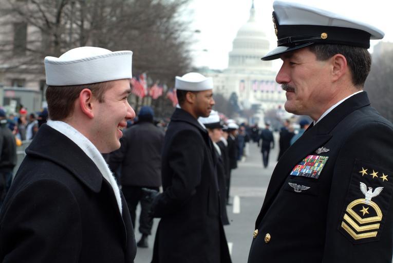 Keywords: US Navy 050120-N-0962S-040 Master Chief Petty Officer of the Navy (MCPON) Terry Scott visits with one of the hundreds of Sailors who helped line the street cordon down Pennsylvania Avenue for the Inauguration Day Parade.jpg en Washington D C Jan 20 2005 - Master Chief Petty Officer of the Navy MCPON Terry Scott visits with one of the hundreds of Sailors who helped line the street cordon down Pennsylvania Avenue for the Inauguration Day Parade held in Washington D C More than 5 000 men and women in uniform took part in the 55th Presidential Inauguration U S Navy photo by Journalist 2nd Class Brandan W Schulze RELEASED 2005-01-20 050120-N-0962S-040 Navy http //www navy mil/view_image asp id 21040 U S Navy photo by Journalist 2nd Class Brandan W Schulze PD-USGov-Military-Navy People of the United States Navy George W Bush 2005 presidential inauguration Terry D Scott |