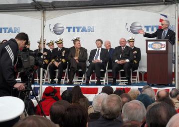 View Original:US_Navy_050205-N-8497H-003_Secretary_of_the_Navy_Gordon_England_speaks_at_the_christening_ceremony_of_the_Navy's_newest_ship,_the_Littoral_Surface_Craft-Experimental_(X-Craft),_Sea_Fighter_(FSF_1).jpg (2100x1500)