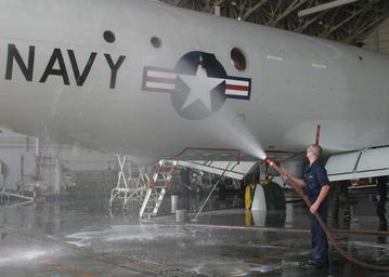 Keywords: US Navy 050215-N-3122S-001 Aviation Ordnanceman Airman Joseph Pfelifticker mans a fire hose as he sprays-down the starboard side of a P-3C Orion.jpg en Okinawa Japan Feb 15 2005 - Aviation Ordnanceman Airman Joseph Pfelifticker mans a fire hose as he sprays-down the starboard side of a P-3C Orion assigned to the Fighting Tigers of Patrol Squadron Eight VP-8 during an aircraft wash in the hangar bay Aircraft washes are conducted every 28 days as part of preventive maintenance and a corrosion control schedule VP-8 is home-based in Brunswick Maine and is currently on deployment to Okinawa Japan U S Navy photo by Photographer's Mate 3rd Class Shannon R Smith RELEASED 2005-02-15 050215-N-3122S-001 Navy http //www navy mil/view_image asp id 21893 U S Navy photo by Photographer's Mate 3rd Class Shannon R Smith PD-USGov-Military-Navy Aviation Ordnanceman Images from US Navy location Okinawa Japan Aircraft washing Patrol Squadron 8 United States Navy P-3C Orion |