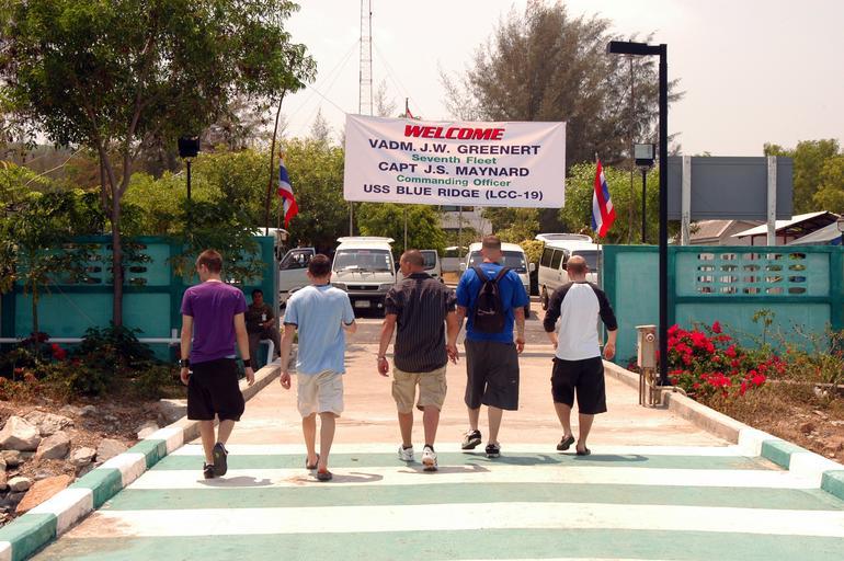 Keywords: US Navy 050302-N-4702D-018 Sailors assigned to the Seventh Fleet command ship USS Blue Ridge (LCC 19) walk up the pier in Phuket, Thailand for their first day of liberty.jpg en Phuket Thailand Mar 2 2005 - Sailors assigned to the Seventh Fleet command ship USS Blue Ridge LCC 19 walk up the pier in Phuket Thailand for their first day of liberty Blue Ridge was in Phuket Thailand on a scheduled port visit While in port the ship's approximately 1 000 Sailors Marines and staff members conducted community service projects and learned more about the Thai culture U S Navy photo by Photographer's Mate Airman William J Davis RELEASED 2005-03-02 050302-N-4702D-018 Navy http //www navy mil/view_image asp id 22398 U S Navy photo by Photographer's Mate Airman William J Davis PD-USGov-Military-Navy Images from US Navy location Phuket Thailand |