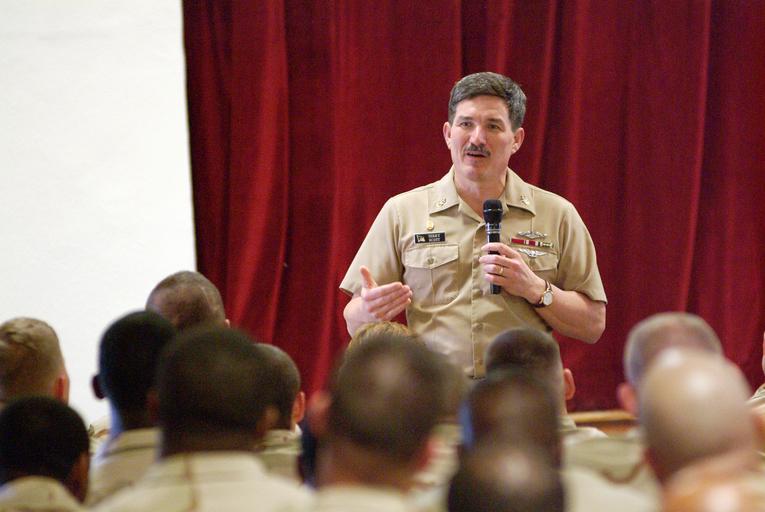 Keywords: US Navy 050310-N-0962S-106 Master Chief Petty Officer of the Navy (MCPON) Terry Scott speaks to Sailors during an All Hands call in Guantanamo Bay, Cuba.jpg en Guantanamo Bay Cuba Mar 10 2005 - Master Chief Petty Officer of the Navy MCPON Terry Scott speaks to Sailors during an All Hands call in Guantanamo Bay Cuba Scott took a variety of questions from those stationed on the island as well as Sailors deployed with Joint Task Force Guantanamo The visit to Cuba gave MCPON the opportunity to interact answer questions and thank those Sailors directly supporting the Global War on Terrorism U S Navy photo by Journalist 2nd Class Brandan W Schulze RELEASED 2005-03-10 050310-N-0962S-106 Navy http //www navy mil/view_image asp id 22728 U S Navy photo by Journalist 2nd Class Brandan W Schulze PD-USGov-Military-Navy Guantanamo Bay Naval Base Terry D Scott |