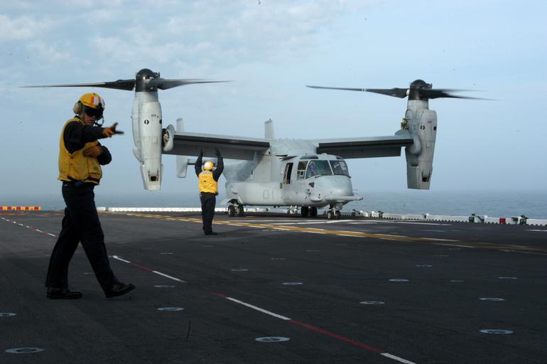 | Keywords: US Navy 050323-N-7945K-053 An MV-22 Osprey, assigned to the ^ldquo,Argonauts^rdquo, of Marine Tiltrotor Operational Test and Evaluation Squadron Two Two (VMX-22), lands on the flight deck aboard the amphibious assault ship USS.jpg en Atlantic Ocean Mar 23 2005 - An MV-22 Osprey assigned to the Argonauts of Marine Tiltrotor Operational Test and Evaluation Squadron Two Two VMX-22 lands on the flight deck aboard the amphibious assault ship USS Nassau LHA 4 Nassau worked with the Osprey tiltroters for the first time during a weeklong underway period The Air Department aboard Nassau spent a month preparing for the evolution by sending personnel to Chambers Field Norfolk Va to view the MV-22 Osprey during flight operations U S Navy photo by Photographer's Mate 3rd Class Andrew King Released 2005-03-23 050323-N-7945K-053 Navy http //www navy mil/view_image asp id 23081 U S Navy photo by Photographer's Mate 3rd Class Andrew King PD-USGov-Military-Navy Aboard USS Nassau LHA-4 MV-22B Osprey USMC in hovering VMX-22 |