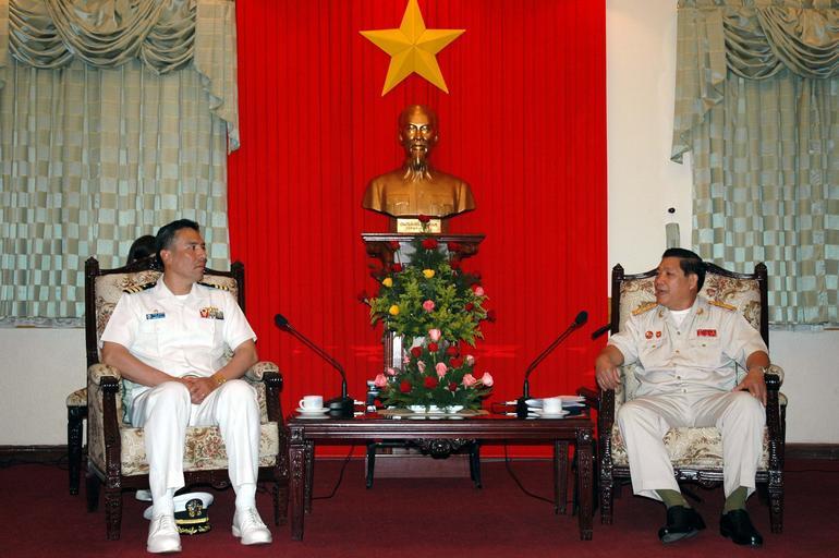 Keywords: US Navy 050329-N-6696N-001 Commanding Officer, USS Gary (FFG 51), Cmdr. Rob Marin, left, meets with Commander, Vietnamese Military Region 7 Headquarters, Senior Capt. Bui Van Nga, in downtown Ho Chi Minh City, Vietnam.jpg en Ho Chi Minh City Vietnam Mar 29 2005 - Commanding Officer USS Gary FFG 51 Cmdr Rob Marin left meets with Commander Vietnamese Military Region 7 Headquarters Senior Capt Bui Van Nga in downtown Ho Chi Minh City Vietnam during Gary's historic port visit to Vietnam Gary is the second U S warship to visit Ho Chi Minh City since 1973 Currently under way in the 7th Fleet area of responsibility AOR Gary demonstrates power projection and sea control as one of the USS Kitty Hawk CV 63 Carrier Strike Group's forward-deployed frigates operating from Yokosuka Japan U S Navy photo by Ens Kevin Naughton RELEASED 2005-03-29 050329-N-6696N-001 Navy http //www navy mil/view_image asp id 23299 U S Navy photo by Ens Kevin Naughton PD-USGov-Military-Navy Images from US Navy location Ho Chi Minh City Vietnam Aboard USS Kitty Hawk CV-63 |
